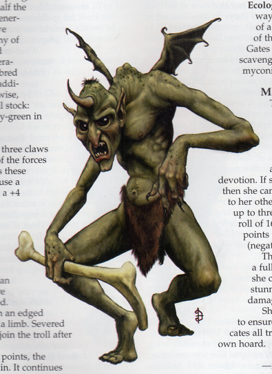 79-80 Mutant Troll Pack - slightly undersized trolls that mutate as they regenerate. They can climb at 1/2 walking speed and have one hit die more than other terrain types. During regeneration of massive damage they can fuse together into larger abominations or break into smaller, independent, ruined parts.
